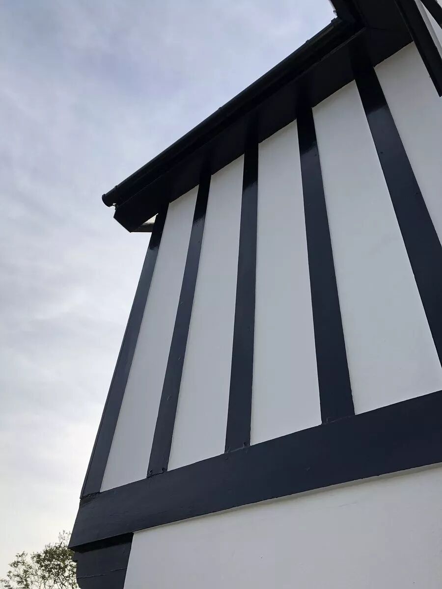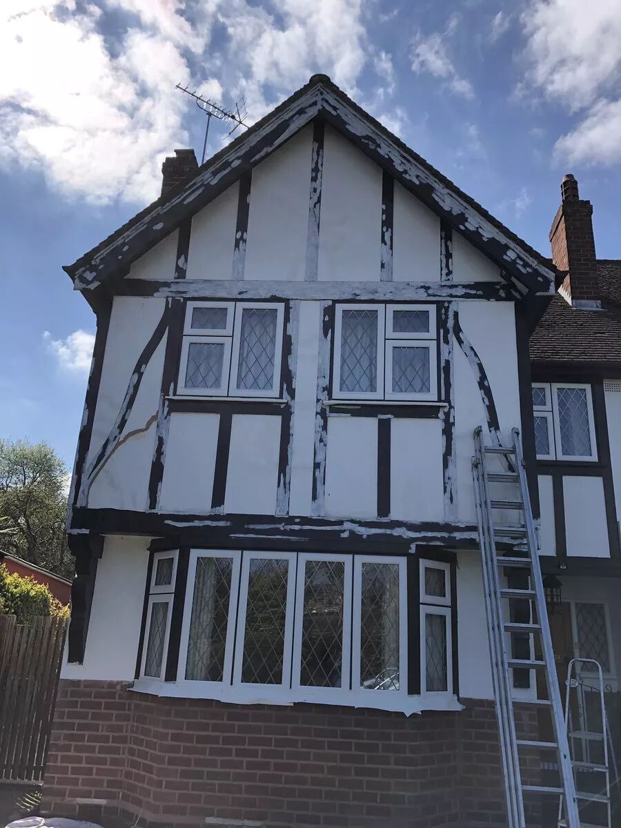 屋顶的木梁部分也是有开裂,剥落,老化。用津色PEEL STOP加固底漆。渗入木梁内部“粘合”内部结构,防止进一步掉皮,密封粉化的木梁,阻止开裂。