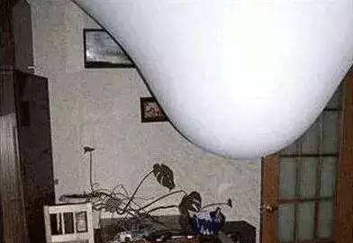 某住户远游几日,回家发现楼上人家水管爆裂,结果自家天花板的乳胶漆兜住了楼上的瀑布。