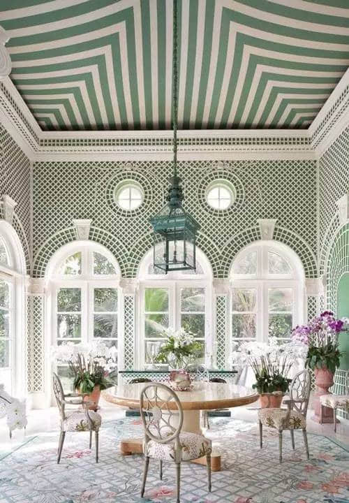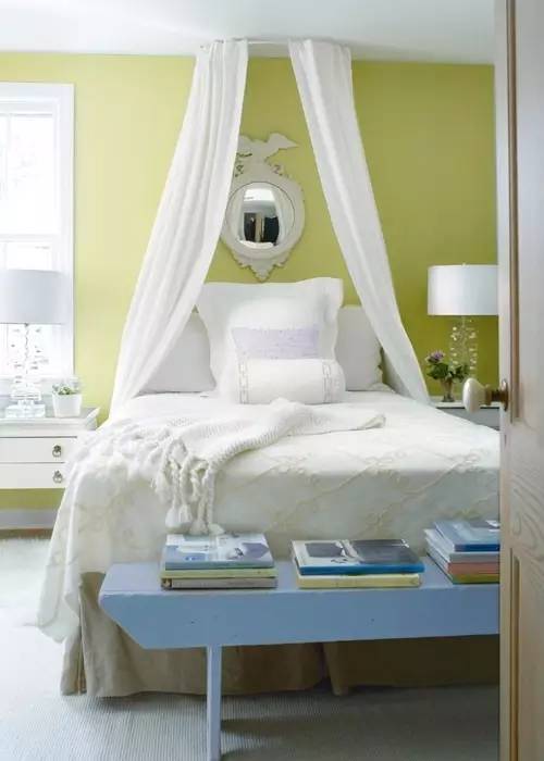 一般人们都习惯重点关注墙的涂刷效果,但一个房间真正最大的那面墙其实是天花,这面墙往往被大多数人忽略。专业设计师的观点是:“不要将天花涂刷成干巴巴的那种白色,因为所有白色涂料都含有一点灰色,它会让房间有往下拉的效果。”