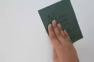 待腻子干后,用砂纸进行打磨,打磨一定要从四周向中心来操作,打磨边角时更是要格外小心,能直尽量直。注意打磨砂纸不要漏磨或将腻子磨穿,刮板印经砂纸打磨后,将浮尘清理干净,就可以直接刷面漆了。